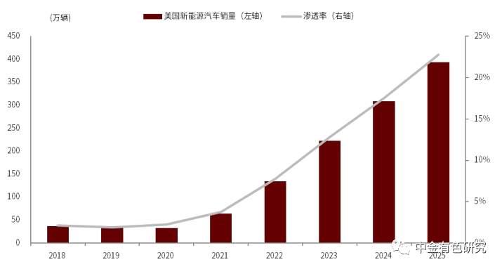 圖表15:2018-2025年美國新能源汽車銷量預(yù)測(cè)