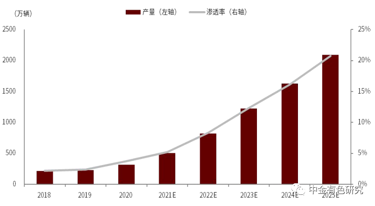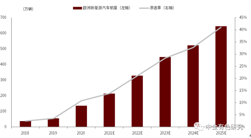 圖表13:2018-2025年歐洲新能源汽車產(chǎn)量預(yù)測(cè)
