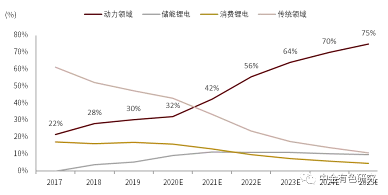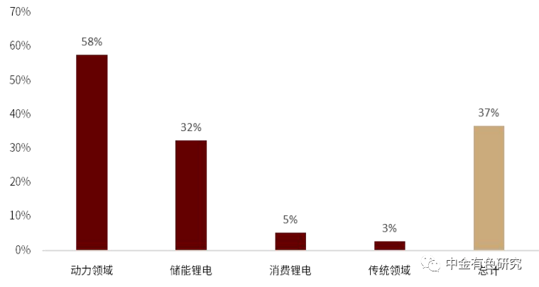 圖表1:2021-2025年各領(lǐng)域鋰需求CAGR