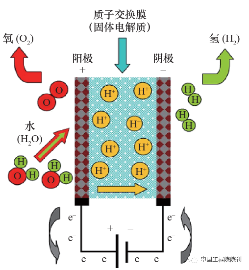 圖 2 質(zhì)子交換膜水電解制氫原理