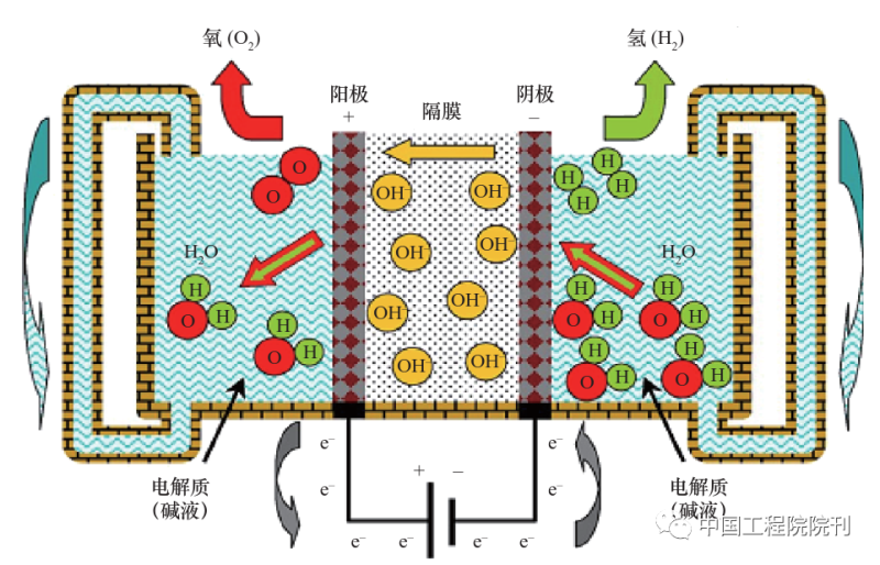 在市場(chǎng)化進(jìn)程方面,堿水電解(AWE)作為最為成熟的電解技術(shù)占據(jù)著主導(dǎo)地位,尤其是一些大型項(xiàng)目的應(yīng)用。AWE采用氫氧化鉀(KOH)水溶液為電解質(zhì),以石棉為隔膜,分離水產(chǎn)生氫氣和氧氣,效率通常在70%~80%。一方面,AWE在堿性條件下可使用非貴金屬電催化劑(如Ni、Co、Mn等),因而電解槽中的催化劑造價(jià)較低,但產(chǎn)氣中含堿液、水蒸氣等,需經(jīng)輔助設(shè)備除去;另一方面,AWE難以快速啟動(dòng)或變載、無(wú)法快速調(diào)節(jié)制氫的速度,因而與可再生能源發(fā)電的適配性較差。我國(guó)AWE裝置的安裝總量為1500~2000套,多數(shù)用于電廠冷卻用氫的制備,國(guó)產(chǎn)設(shè)備的最大產(chǎn)氫量為1000 Nm3/h。國(guó)內(nèi)代表性企業(yè)有中國(guó)船舶集團(tuán)有限公司第七一八研究所、蘇州競(jìng)立制氫設(shè)備有限公司、天津市大陸制氫設(shè)備有限公司等,代表性的制氫工程是河北建投新能源有限公司投資的沽源風(fēng)電制氫項(xiàng)目(4 MW)。