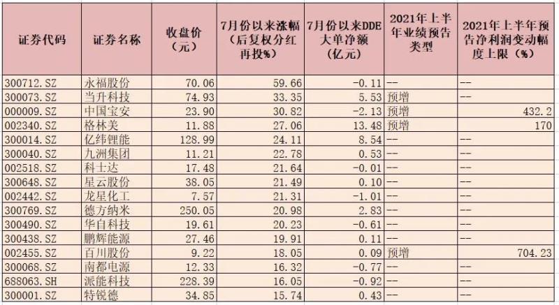 值得一提的是,7月份以來,儲能概念板塊中涌現(xiàn)多只強(qiáng)勢股,寧德時代、德方納米、億緯鋰能、震??萍肌㈥柟怆娫?、永福股份、國軒高科、天合光能、新風(fēng)光等9只個股股價均創(chuàng)出歷史新高。