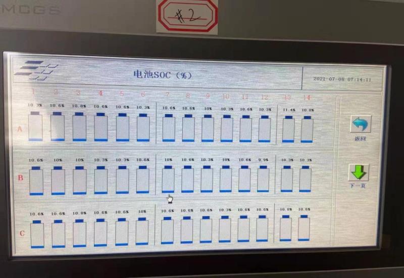 上圖是我7月8號(hào)從一個(gè)現(xiàn)場(chǎng)截取的圖片,這是其中一個(gè)火電廠調(diào)頻項(xiàng)目的電池最后放電截止之后SOC的情況:一共42簇,簇最高SOC是11.4%,最低是9.9%,最大SOC差值在1.5%,這個(gè)一個(gè)非常優(yōu)秀的電池均衡特性,這也和采用高壓級(jí)聯(lián)型儲(chǔ)能技術(shù)分不開的。高壓級(jí)聯(lián)型儲(chǔ)能系統(tǒng)設(shè)計(jì),沒有電池簇并聯(lián),電池簇和電池簇之間是相互獨(dú)立的,可以單獨(dú)進(jìn)行充放電控制。