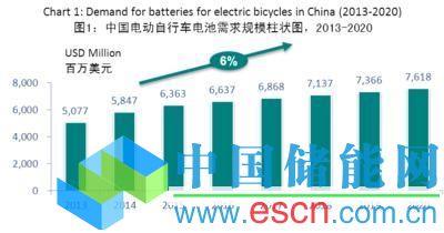 圖1:中國電動自行車電池需求規(guī)模柱狀圖,2013-2020
