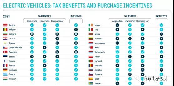 圖9 歐洲國家對于電動汽車的支持財稅政策