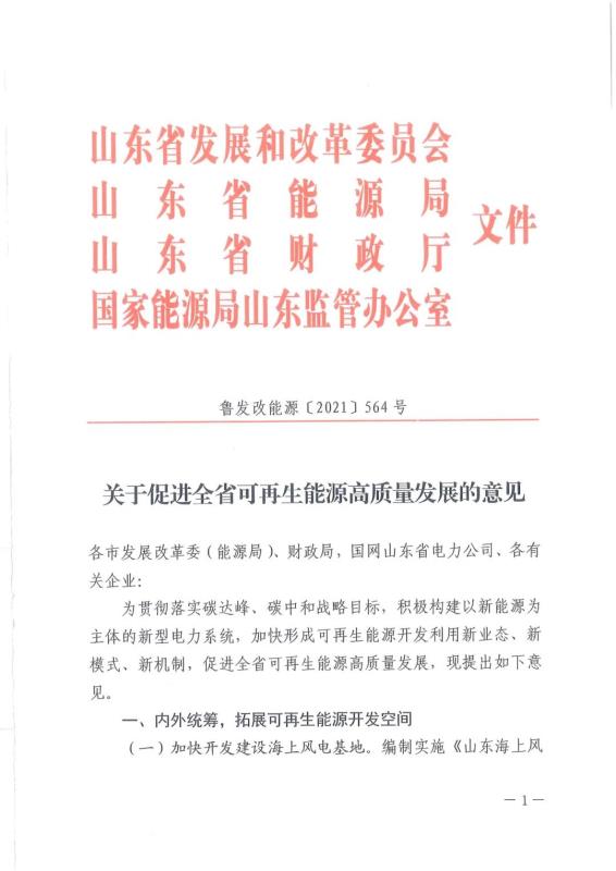 今日(7月16日)上午,山東省能源局發(fā)布了《關(guān)于促進(jìn)全省可再生能源高質(zhì)量發(fā)展的意見》,意見提到,為貫徹落實碳達(dá)峰、碳中和戰(zhàn)略目標(biāo),積極構(gòu)建以新能源為主體的新型電力系統(tǒng),加快形成可再生能源開發(fā)利用新業(yè)態(tài)、新模式、新機(jī)制,促進(jìn)全省可再生能源高質(zhì)量發(fā)展,提出一系列意見。