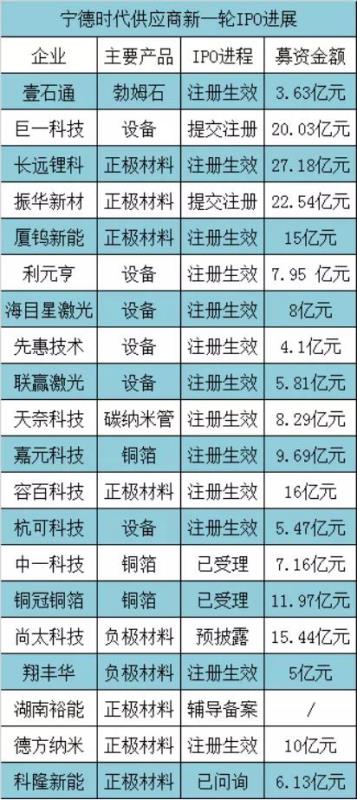 具體來看,在這一波鋰電企業(yè)IPO浪潮中,寧德時代供應(yīng)商的IPO情況存在以下特點: