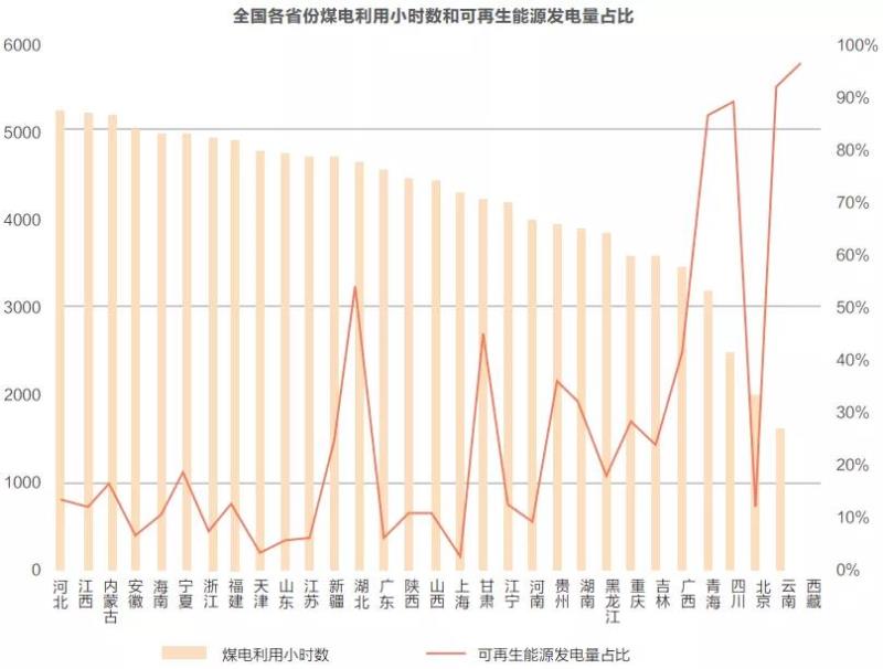 盡管煤電仍然還有4000多小時(shí)的利用小時(shí)數(shù),情形尚可,但是,從長(zhǎng)期來(lái)看,煤電終將面臨利用小時(shí)數(shù)逐漸降低的壓力。從地區(qū)結(jié)構(gòu)上看,即便是在當(dāng)前,在一些清潔能源占比較高的地區(qū),煤電的利用小時(shí)數(shù)已經(jīng)低于3000小時(shí)。從分省來(lái)看,十余個(gè)省的煤電利用小時(shí)數(shù)已低于4000小時(shí),在清潔能源占比較高的省份,煤電利用小時(shí)已經(jīng)低于3000小時(shí)。