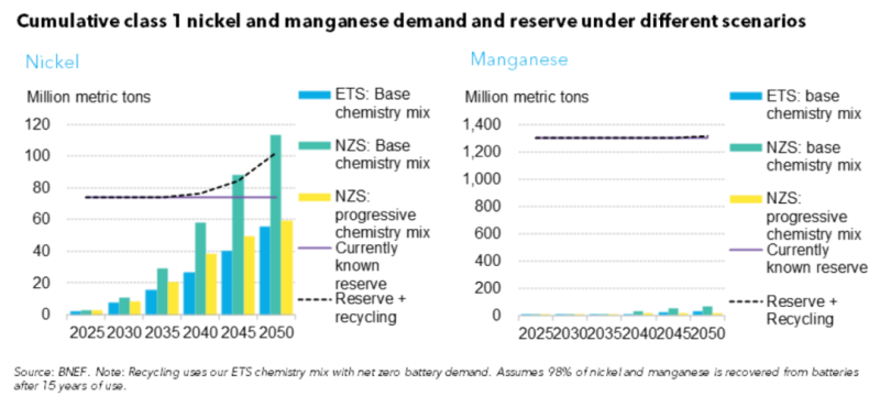 總的來說,即使在凈零排放情況下,電動(dòng)汽車市場的增長也不會受到金屬供應(yīng)限制的影響。對于錳等金屬,目前已知儲量的供應(yīng)足以滿足2050年之前的需求。為了保持鋰、鎳和鈷的需求平衡,需要采取一系列措施,要求政府、汽車制造商、電池制造商、礦工和回收商通力合作。這包括需要密集的充電網(wǎng)絡(luò)、新的電池化學(xué)制品、廣泛的回收利用以及對新的采礦和煉油能力的投資。新的開采技術(shù)和持續(xù)的高價(jià)格也可能改變已知的可采儲量。