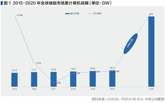 在碳中和背景下,國際國內(nèi)權(quán)威機(jī)構(gòu)、政府機(jī)關(guān)和中央企業(yè)結(jié)合當(dāng)前實(shí)際與發(fā)展要求,紛紛預(yù)測或提出儲能裝機(jī)規(guī)模的時(shí)間表、路線圖??傮w來看,在各國政府大力引導(dǎo)推動下,國際國內(nèi)儲能市場將高速增長。