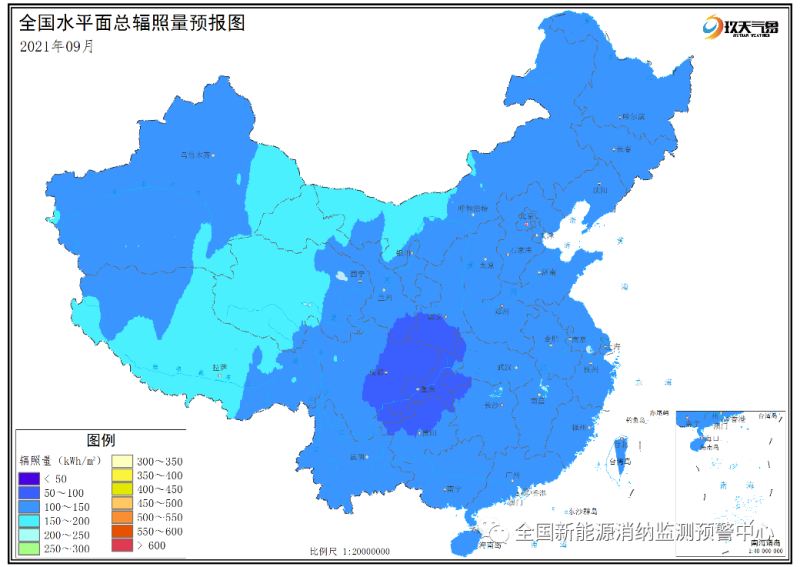 附圖6 全國(guó)2021年9月水平面總輻照量預(yù)報(bào)圖