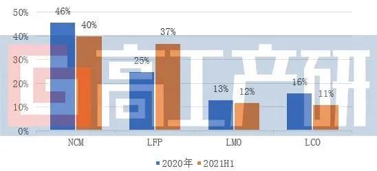 2020及2021H1正極材料市場(chǎng)占比(分產(chǎn)品)