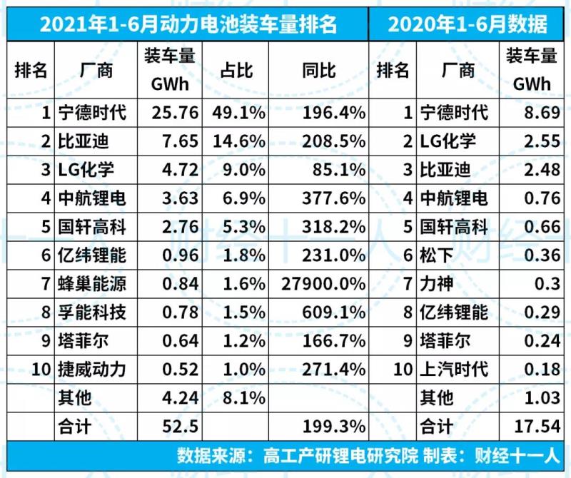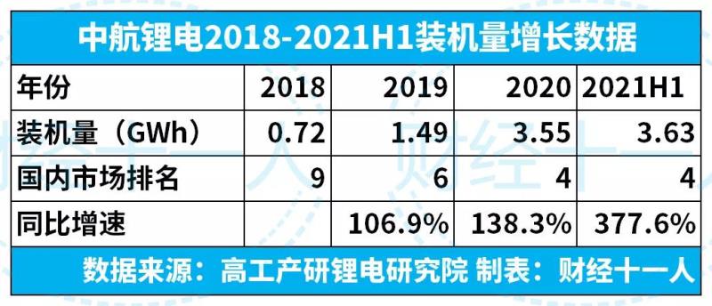 隨著2019年開建的部分新工廠在今年上半年陸續(xù)投產(chǎn),中航鋰電2021年的裝機增速再次提升,上半年已經(jīng)超過去年全年。