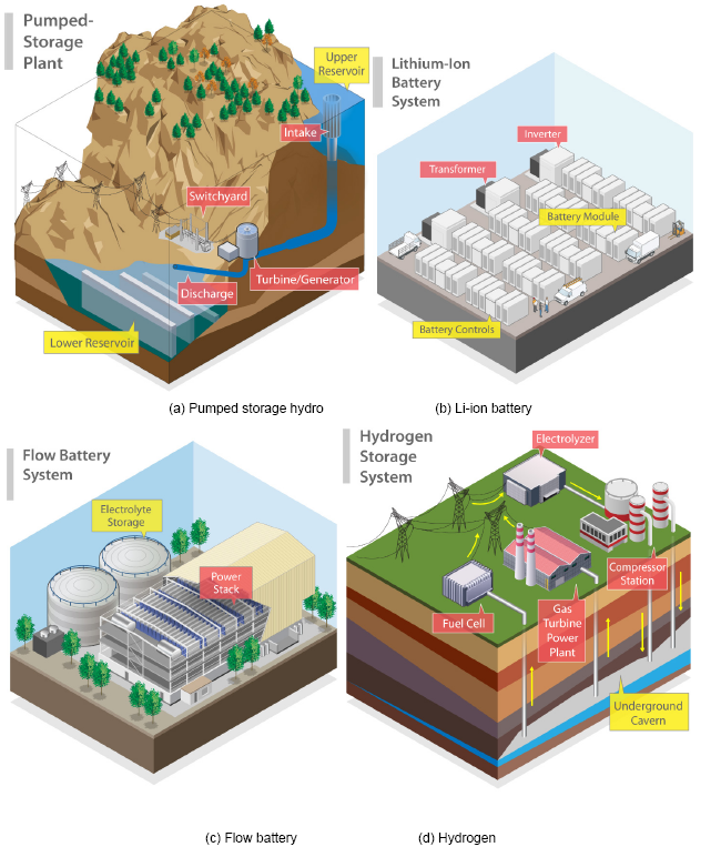 與傳統(tǒng)發(fā)電設(shè)施的投資相比,儲能系統(tǒng)主要的區(qū)別在于有兩個(gè)組成部分:功率(裝機(jī)容量)和能量(儲能容量)。由于電能幾乎總是以另一種形式存儲(例如,水的勢能、化學(xué)能或動能),因此需要電力轉(zhuǎn)換設(shè)備將這些能量轉(zhuǎn)換為另一種形式,然后使用水泵、電力電子設(shè)備或其他技術(shù)再次轉(zhuǎn)換。這一過程代表了儲能設(shè)備的功率組件和相關(guān)成本。