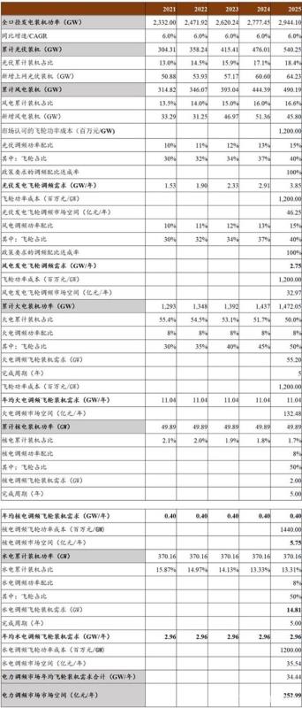 圖:2021-2025飛輪儲能電力調(diào)頻市場空間預(yù)測(億元)
