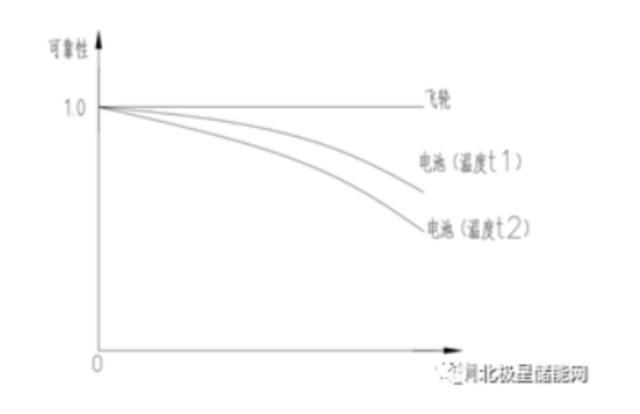 飛輪儲能作為物理(或機(jī)械)的儲能手段,在安全性和可靠性方面都比電池更具優(yōu)勢。經(jīng)研究發(fā)現(xiàn),飛輪儲能不隨時間窗口而退化,也不受外界環(huán)境的影響。因此,飛輪儲能的可靠性能夠得到保證(下圖1)。此外,飛輪儲能作為一種功率性器件,在同樣大小的放電功率下,存儲的能量顯著地低于電池,其失效后果也比電池要小得多(下圖2)。