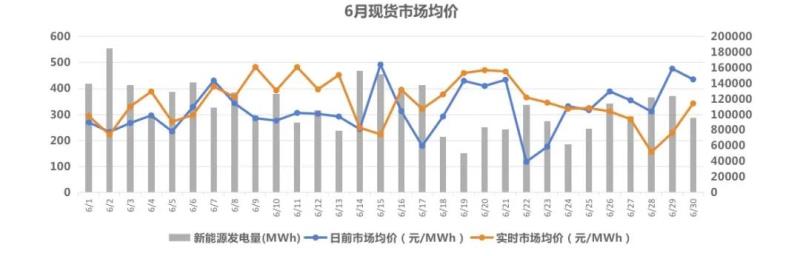在甘肅省6月結(jié)算試運(yùn)行期間,日前市場(chǎng)平均出清價(jià)格319元/MWh,實(shí)時(shí)市場(chǎng)平均出清價(jià)格348元/MWh,日前市場(chǎng)和實(shí)時(shí)市場(chǎng)的出清均價(jià)較5月明顯升高(300/274元/MWh)。但5、6月份甘肅的現(xiàn)貨試運(yùn)行結(jié)果反映出,甘肅現(xiàn)貨市場(chǎng)實(shí)時(shí)價(jià)格與日前市場(chǎng)價(jià)格越來(lái)越不耦合。