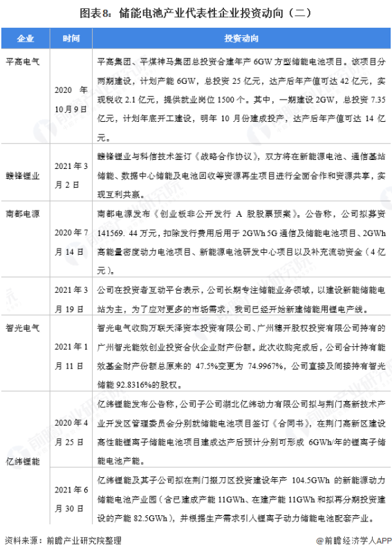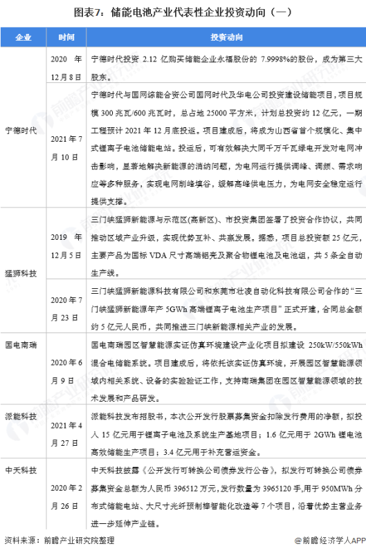儲能電池產業(yè)代表性企業(yè)最新投資動向