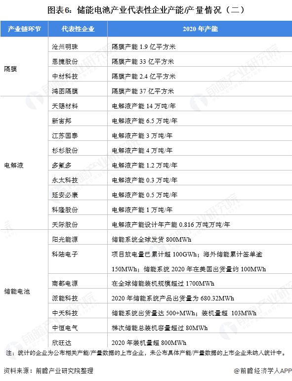 儲能電池產業(yè)代表性企業(yè)產能/產量情況