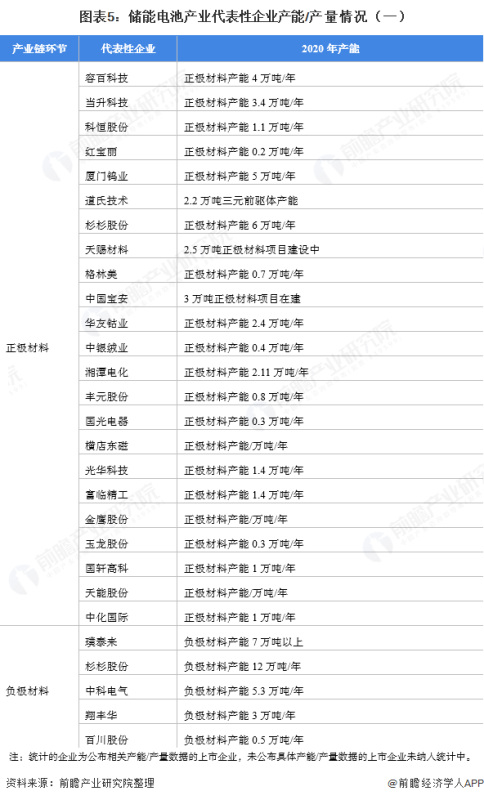 目前,布局了儲能電池上游原材料的上市企業(yè)中,杉杉股份在正極材料、負極材料和電解液產量遙遙領先于其它企業(yè)。儲能電池產業(yè)產業(yè)鏈上的其它代表性企業(yè)產能/產量情況如下: