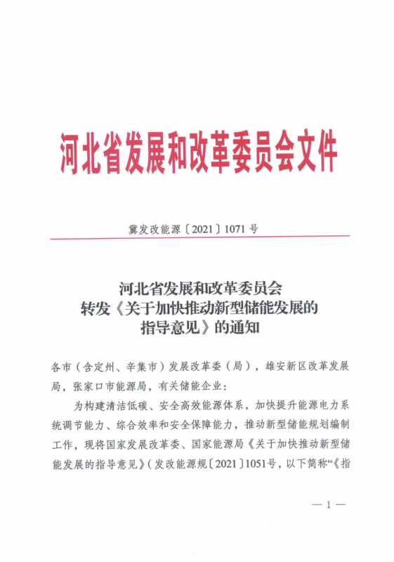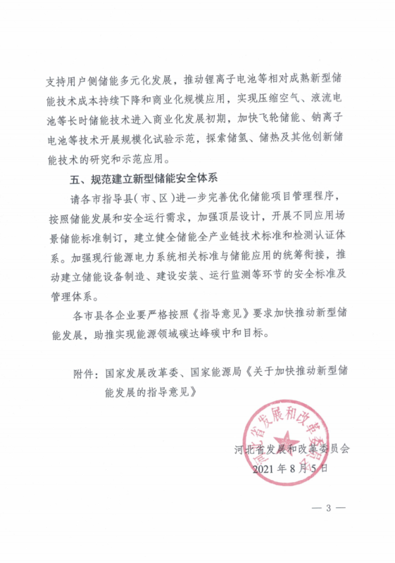 8月5日,河北省發(fā)改委印發(fā)《關(guān)于加快推動(dòng)新型儲(chǔ)能發(fā)展的指導(dǎo)意見(jiàn)》的通知,要求各市在充分掌握電力系統(tǒng)實(shí)際情況、資源條件、建設(shè)能力等基礎(chǔ)上,按年度編制新型儲(chǔ)能發(fā)展方案。