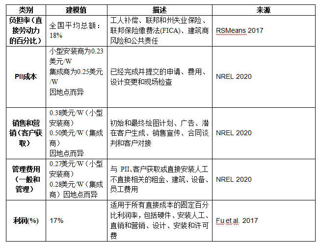 基準測試方法包括自下而上計算安裝美國住宅太陽能發(fā)電系統(tǒng)時產(chǎn)生的所有必要和項目開發(fā)成本。今年的成本基準報告計算了許多太陽能發(fā)電系統(tǒng)經(jīng)常產(chǎn)生的額外硬件、安裝人工成本。由于某些具有管轄權(quán)的當局的要求,或者對于特定建筑物,必須產(chǎn)生額外的硬件和安裝人工成本。并非所有項目都必須承擔這些成本,因此每個步驟對太陽能發(fā)電系統(tǒng)總成本的平均貢獻是通過將每次發(fā)生的平均成本(材料成本或小時工資乘以小時數(shù))乘以估計百分比來計算的。使用這一步驟的銷售額除以從這一步驟到已經(jīng)安裝系統(tǒng)的平均轉(zhuǎn)化率。額外成本類別可能會增加10%的基準系統(tǒng)成本。