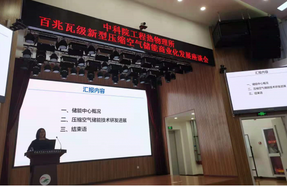 趙懷勇副司長聽取了儲能研發(fā)中心主任徐玉杰就工程熱物理所在壓縮空氣儲能技術(shù)研發(fā)的進展,技術(shù)先進性,行業(yè)發(fā)展趨勢的介紹,以及關(guān)于張家口100MW新型壓縮空氣儲能項目進展情況的專項工作匯報。