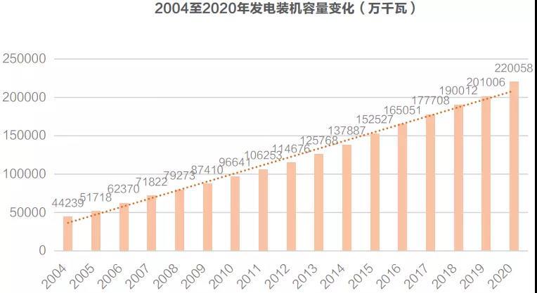 從行業(yè)發(fā)展的額實際看,無論是發(fā)電裝機總量,還是煤電、風電、光伏裝機容量,都超過了《規(guī)劃》設(shè)定的目標。2020年全社會用電量7.5萬億千瓦時,略超過預期值;煤電累計裝機超過12億千瓦。