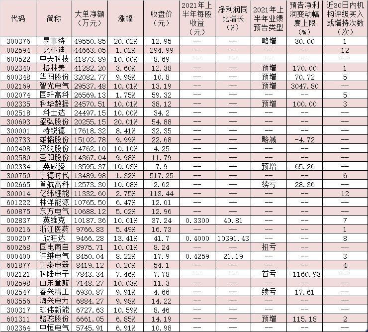 在行業(yè)持續(xù)向好的支撐下,儲能行業(yè)上市公司業(yè)績表現(xiàn)普遍較好。同花順數(shù)據(jù)統(tǒng)計發(fā)現(xiàn),在112家儲能行業(yè)上市公司中,截至8月11日收盤,有13家公司已披露2021年半年報業(yè)績,12家公司今年上半年實現(xiàn)凈利潤同比增長。除此之外,有43家公司也披露了2021年上半年業(yè)績預告,30家公司業(yè)績預喜。綜合來看,2021年上半年實現(xiàn)或有望實現(xiàn)凈利潤同比增長的公司共有42家,占比逾七成。