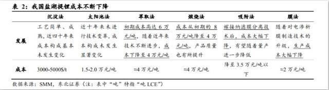 據(jù)東方證券研報(bào),南美鹽湖資源量大、鋰含量高、鎂鋰比低,可采用成熟、簡(jiǎn)單的沉淀法。