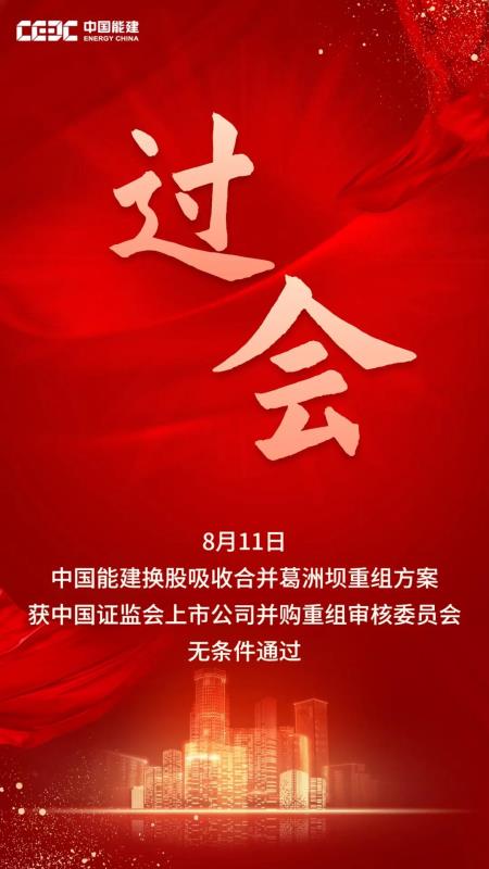 8月11日,中國能源建設(shè)股份有限公司(以下簡稱中國能建)換股吸收合并中國葛洲壩集團(tuán)股份有限公司暨關(guān)聯(lián)交易(以下簡稱本次重組)獲得中國證監(jiān)會(huì)并購重組審核委員會(huì)無條件通過。交易完成后,中國能建將實(shí)現(xiàn)在A+H兩地上市。