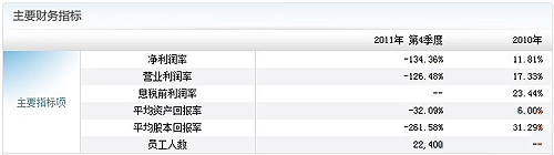 4月30日,千呼萬喚始出來的賽維2011年第四季度財報終于露出真身。財報數(shù)據(jù)顯示:2011年四季度賽維總計虧損5.887億美元,而上年同期則是盈利1.452億美元,去年四季度,賽維LDK凈銷售額下滑54%,至4.202億美元,利潤率僅為-65.5%。相比之下,2010財年第四財季,公司的利潤率為27.3%。不僅如此,江西賽維2011年四季度賽維負債總額也已經(jīng)高達60億美元,負債率達到87.7%,遠超過了其他幾大光伏巨頭的負債率。