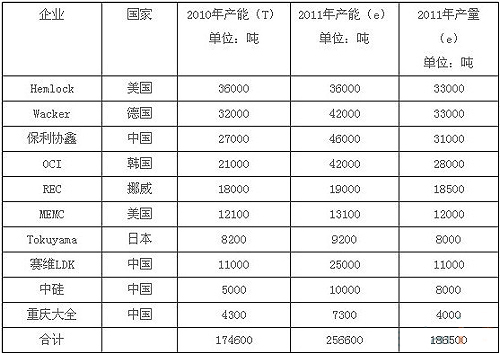 圖3 全球主要多晶硅生產(chǎn)企業(yè)產(chǎn)能與產(chǎn)量列表