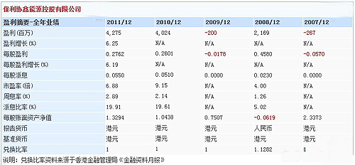 圖2 保利協(xié)鑫能源2007年-2011年盈利摘要