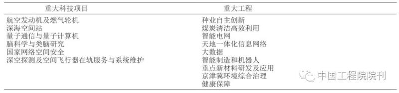 表 7 中國(guó)科技創(chuàng)新 2030——重大科技項(xiàng)目與工程