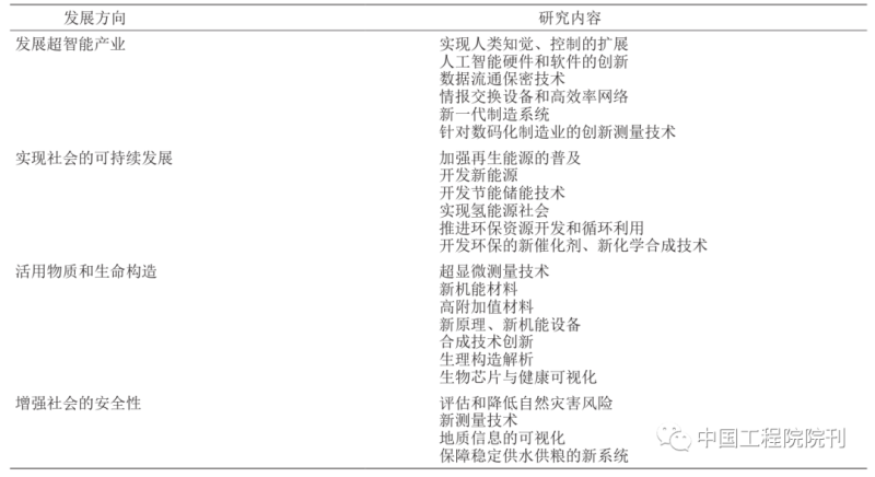 綜合日本各項(xiàng)重大科技戰(zhàn)略計(jì)劃可以看出,日本近幾年關(guān)注的工程科技發(fā)展方向主要集中在智能產(chǎn)業(yè)、能源資源以及醫(yī)療和人口健康等方面。