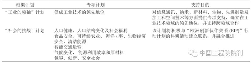 表2 歐盟“地平線2020”部署的工程科技相關(guān)領(lǐng)域計(jì)劃