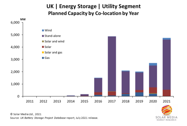 英國2021年第二季度計劃部署的60個儲能項目裝機容量達到創(chuàng)紀錄的3.7GW