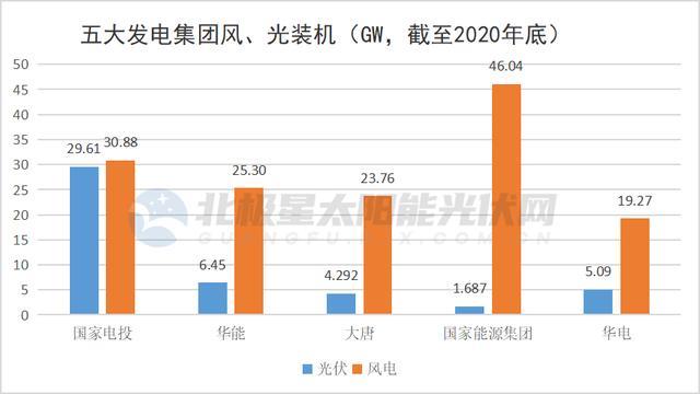 作為風(fēng)電開發(fā)容量前十企業(yè),從上圖可以看出,五大發(fā)電集團(tuán)中,風(fēng)電累計(jì)裝機(jī)均超過光伏。不過,可以看到的是,除光伏“巨無霸”國(guó)家電投外,大唐、國(guó)家能源集團(tuán)、華能、華電紛紛開始發(fā)力光伏。