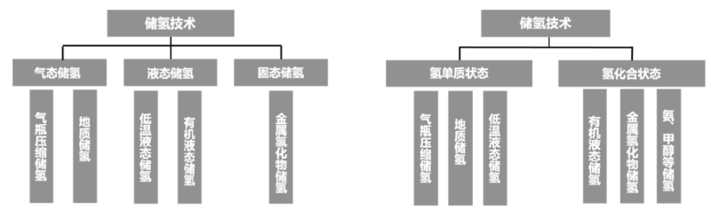 圖3 以物理形態(tài)區(qū)分的儲氫形式 圖4 以化合狀態(tài)區(qū)分的儲氫形式