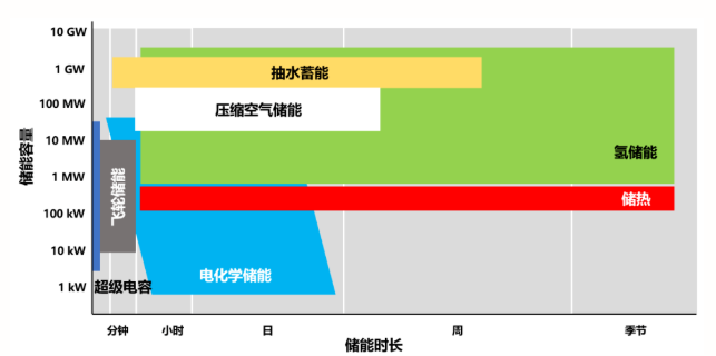 圖2 幾種主要儲能形式的儲能容量和儲能時(shí)長