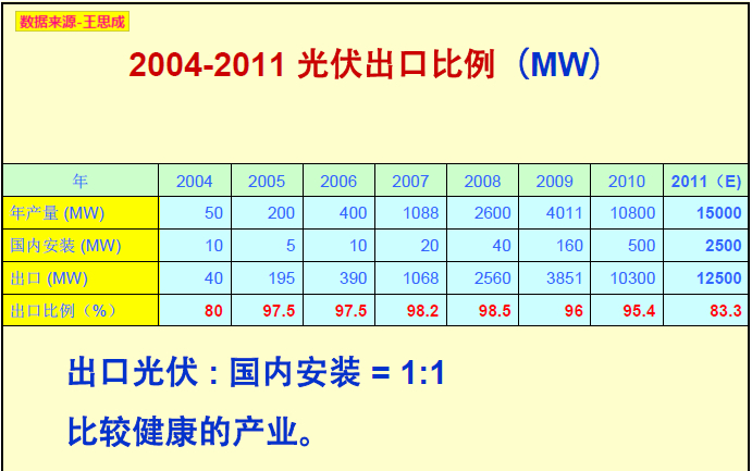 近幾年中國光伏產(chǎn)業(yè)快速崛起,通過規(guī)模、技術(shù)和產(chǎn)業(yè)鏈發(fā)展,極大地促進(jìn)了光伏能源成本下降。預(yù)計(jì)2012年,中國太陽能電池產(chǎn)能將超過40GW,產(chǎn)量將超過24GW,同比增長50%以上,仍將占據(jù)全球光伏市場的半壁江山。悲哀的是,由于國內(nèi)并網(wǎng)受限,國內(nèi)市場增長遲緩。生產(chǎn)廠不得不舍近求遠(yuǎn),產(chǎn)品的80%都出口到海外市場,國內(nèi)用戶無法享受到光伏產(chǎn)業(yè)增長的益處。國內(nèi)光伏市場的瓶頸不是成本和技術(shù),而是并網(wǎng)難。