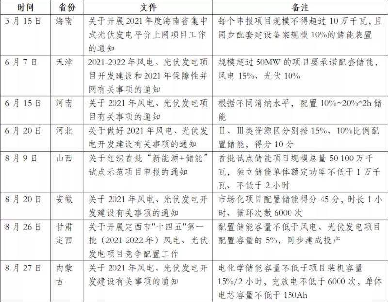部分省份新增風(fēng)、光項(xiàng)目配置儲(chǔ)能要求