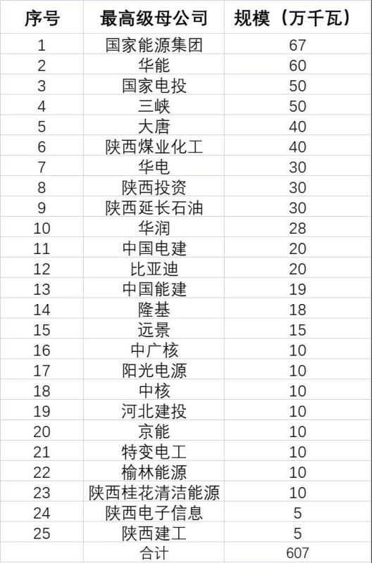 從最高級母公司統(tǒng)計來看,國家能源投資集團、華能、國家電投、三峽、大唐位列TOP 5,詳情如下: