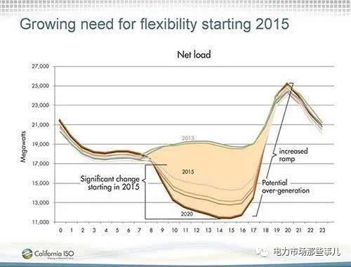 有功平衡服務包括一次調頻、二次調頻、調峰、備用、轉動慣量、爬坡等電力輔助服務,與老辦法相比,增加了轉動慣量、爬坡等新品種,以應對可再生能源發(fā)電滲透率逐漸增高引發(fā)的問題,例如鴨子曲線: