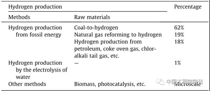 表1 中國的氫氣生產(chǎn)結(jié)構(gòu)現(xiàn)狀