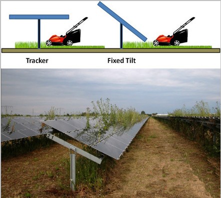 因設(shè)計(jì)不當(dāng),導(dǎo)致光伏電站運(yùn)營后無法除草,雜草遮蓋了光伏組件