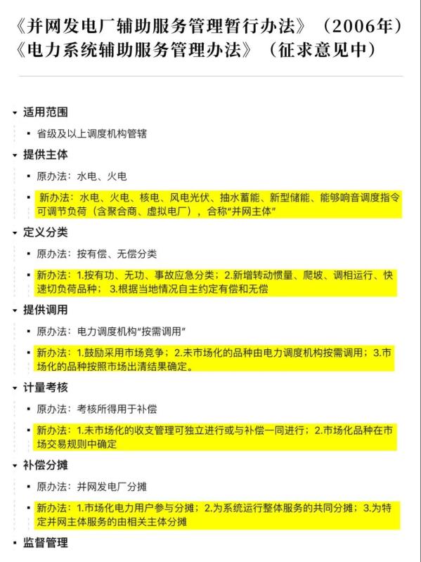 兩文件正式出臺后,將替代原國家電力監(jiān)管委員會印發(fā)的《發(fā)電廠并網(wǎng)運行管理規(guī)定》和《并網(wǎng)發(fā)電廠輔助服務(wù)管理暫行辦法》(下文簡稱“《原辦法》”)。各區(qū)域也將依據(jù)《新辦法》修訂地方性實施細(xì)則,進一步完善輔助服務(wù)管理。