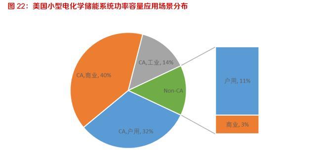 美國表后市場戶用和商業(yè)市場較大,加州外以戶用為主。目前最大的表后市場位于加州,根據(jù) EIA 統(tǒng)計,截至 2019 年加州累計裝機(jī)容量 326MW,占據(jù)全美裝機(jī)容量的 86%,其中 40%用于商業(yè) 區(qū)域,32%用于住宅區(qū)域,14%用于工業(yè)區(qū)域。2019 年夏威夷 22MW,其中 18MW 用于住宅區(qū) 域,4MW 用于商業(yè)區(qū)域,德克薩斯 5MW,其中 4.6MW 用于住宅區(qū),亞利桑那州 5MW,其中 4.6MW 用于住宅區(qū)。
