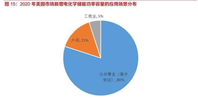 根據(jù)儲能的應(yīng)用場景,通常將美國儲能市場分為電表前(包括發(fā)電和電網(wǎng)),與電表后(包括家用 和工商業(yè))。根據(jù) BNEF 統(tǒng)計,2020 年美國公用事業(yè)端安裝了大量的儲能,新增裝機(jī) 852MW, 同比增長 297%,占當(dāng)年新增 80%,是過去一年的主要增長動力;戶用儲能則是去年的第二大市 場,新增裝機(jī) 154MW,同比增長 63%,占當(dāng)年新增 15%;工商業(yè)儲能新增裝機(jī) 55MW,同比下 降 24%,占當(dāng)年新增 5%。